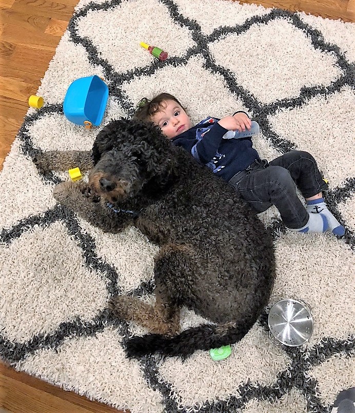 Molly x Harley - "Jim" (phantom color) with Harry our beautiful grandson
